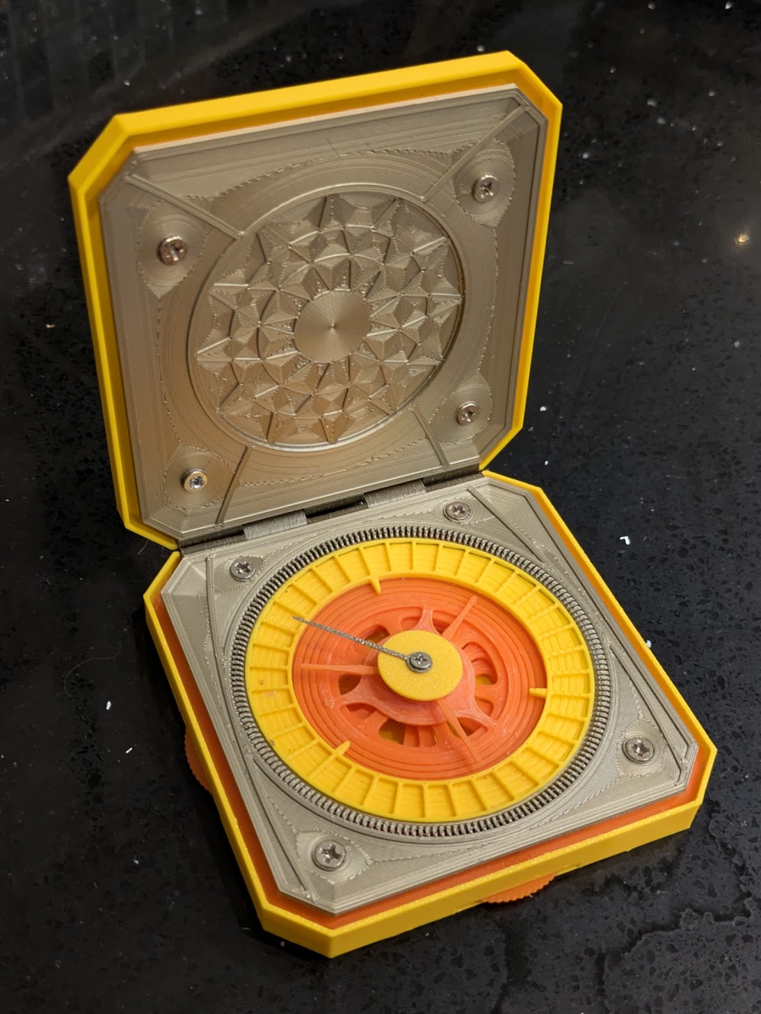 As every parent of young children knows and dreads, World Book Day is nigh. My daughter is dressing up as Lyra from His Dark Materials, with her truth-telling device, the Alethiometer. There’s several on Thingiverse but they’re all defective in some way according to the comments. So I’m making my own based off the version from the BBC series, which we’ve been watching recently.