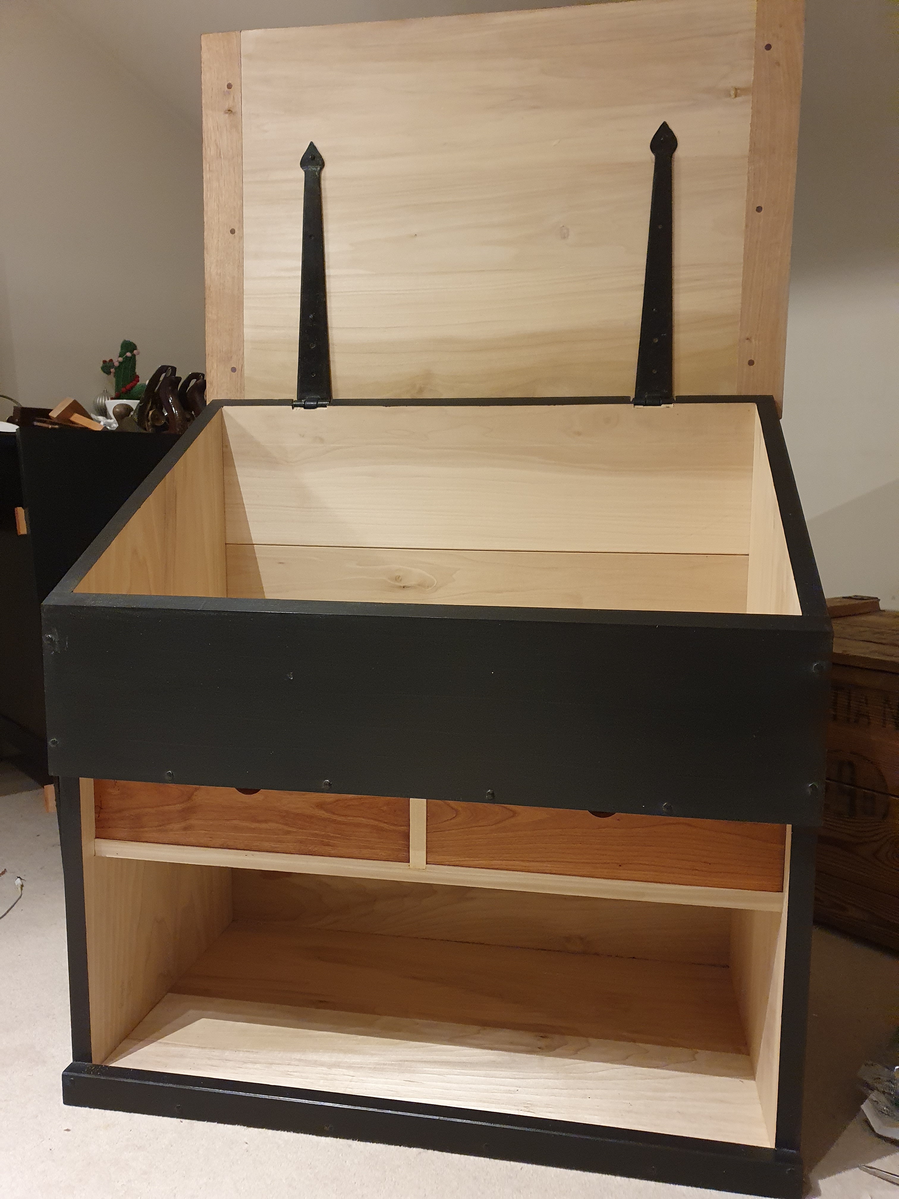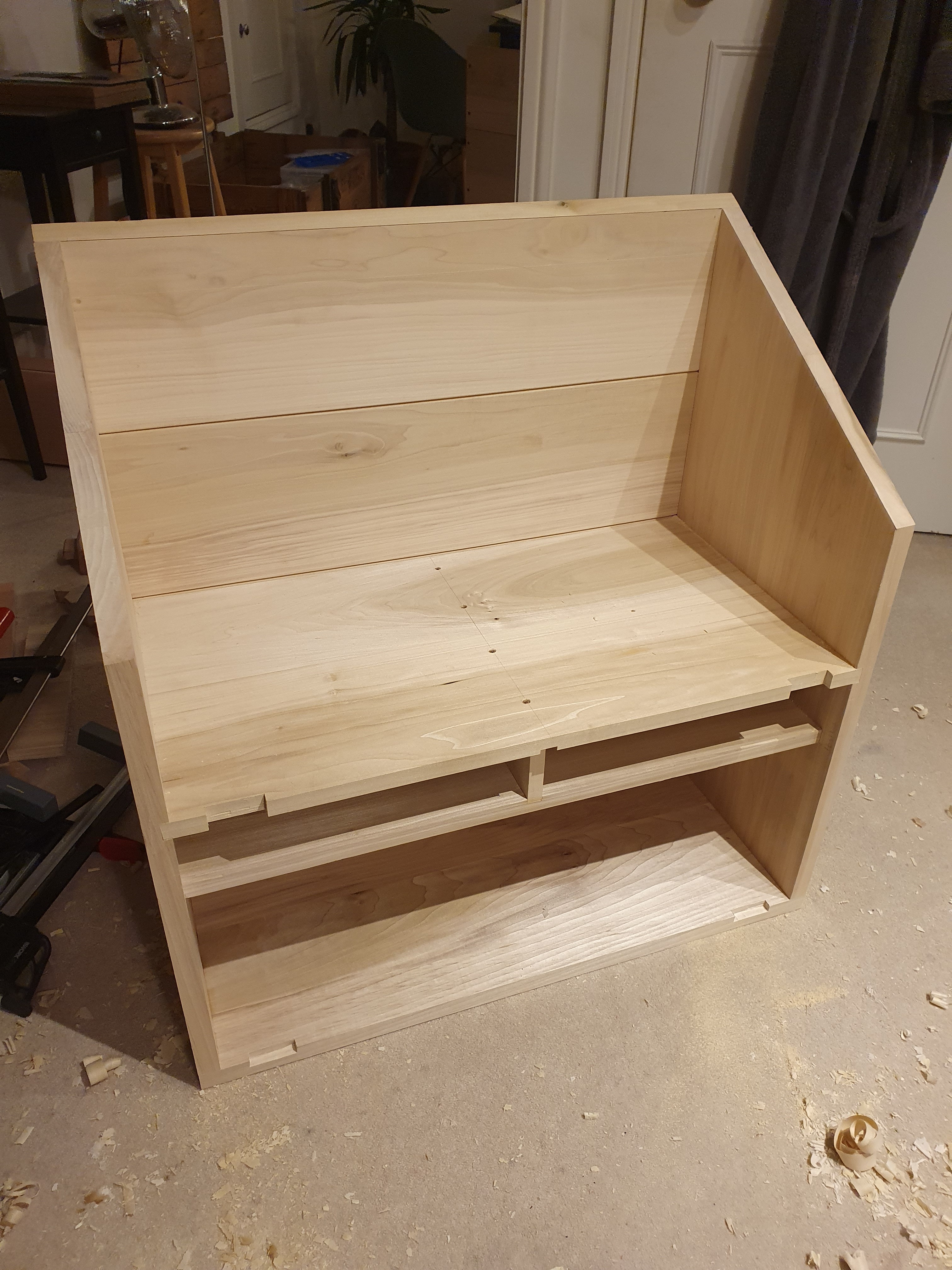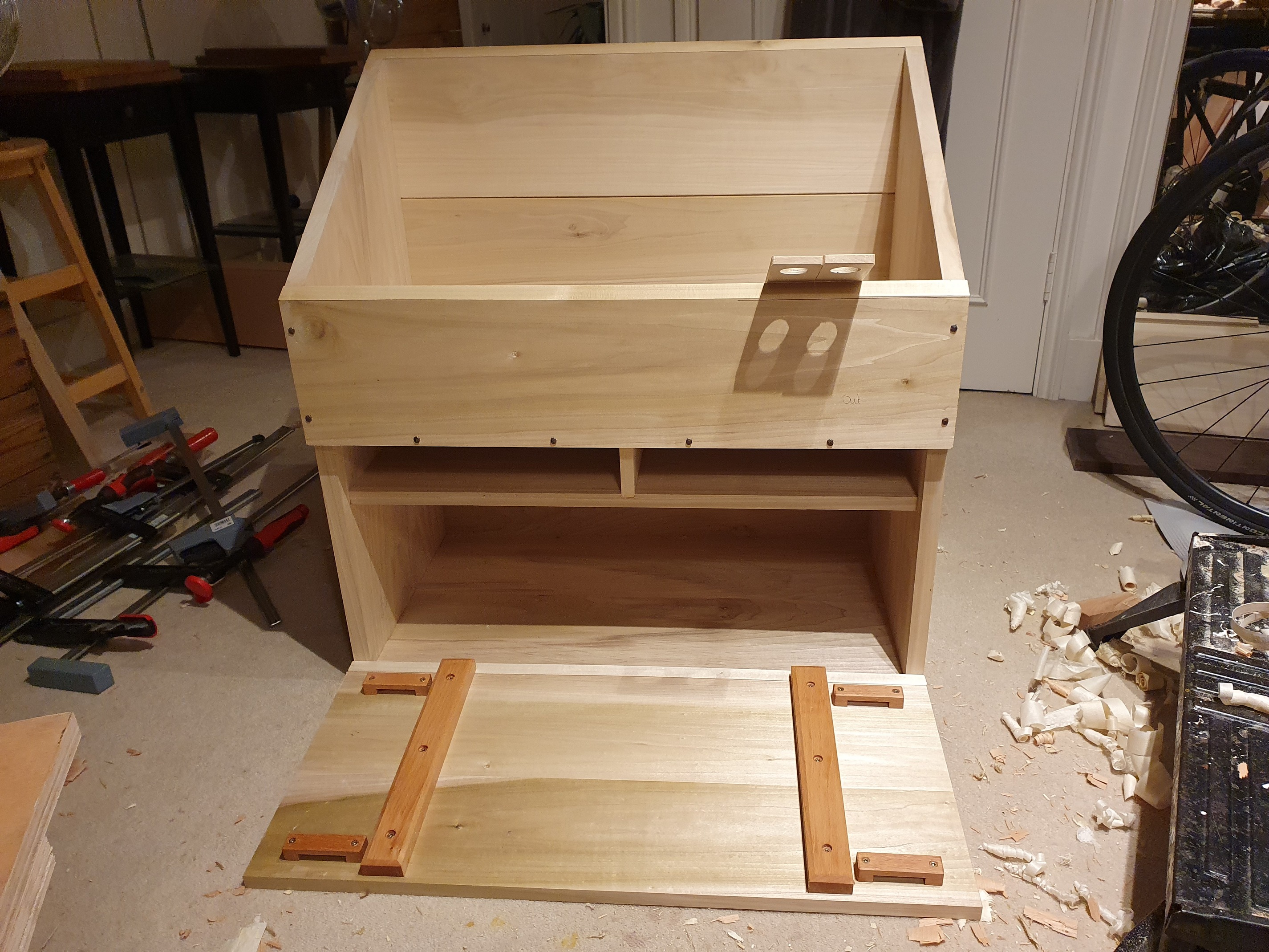 I quite like one example of a fall front where they did a rebate all around the edges which I thought looked good as an alternative to a moulding. No rebate plane ATM but we’ll see. I guess plain is also a legitimate option! It looks good as is to me