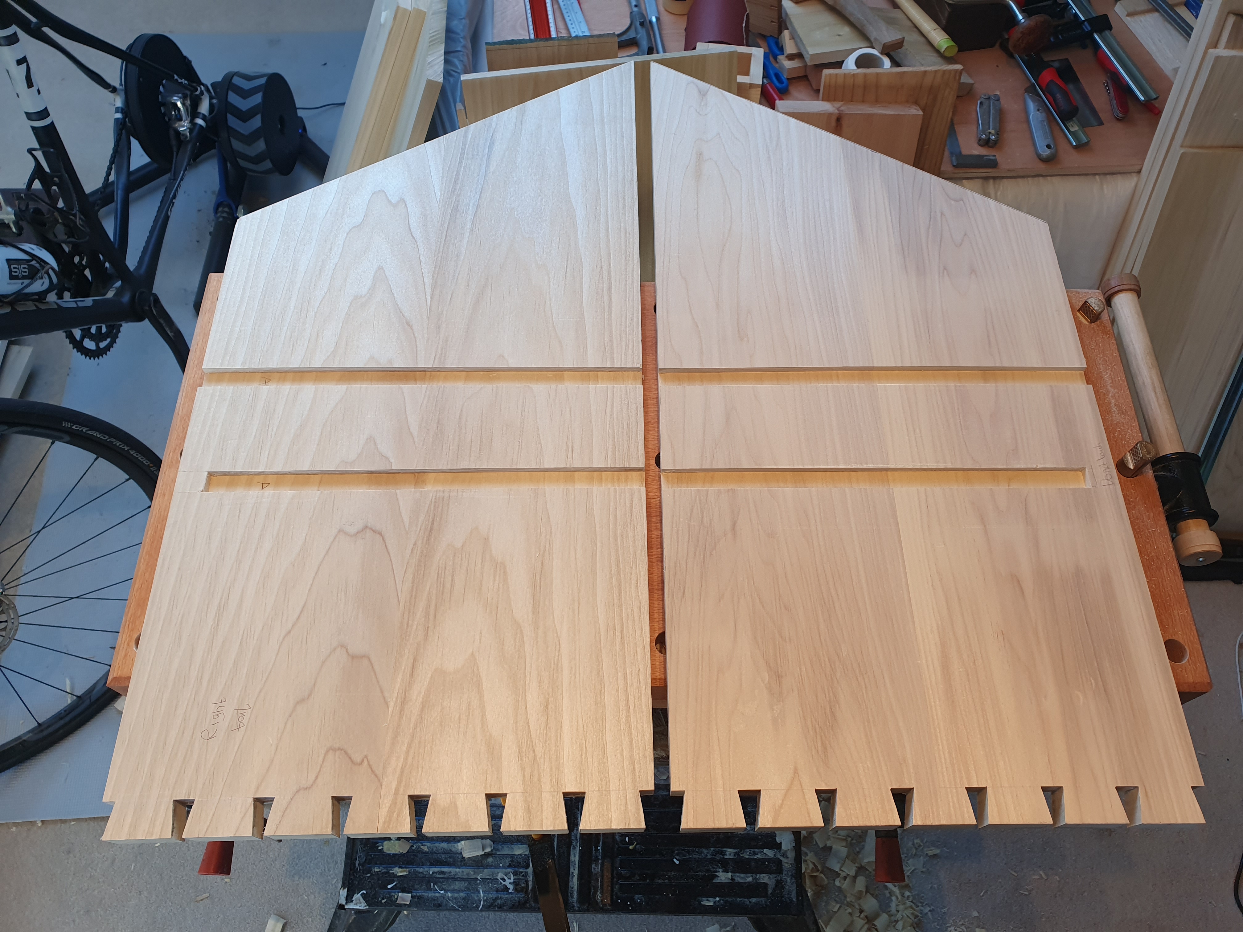 The back is now on and flushed up. I used some wooden tongue and groove planes and four boards to make the panel, then its nailed on the back on with space for seasonal movement. I also slightly champfered the boards where they meet to make the gap look more purposeful. Very happy with how this part has turned out