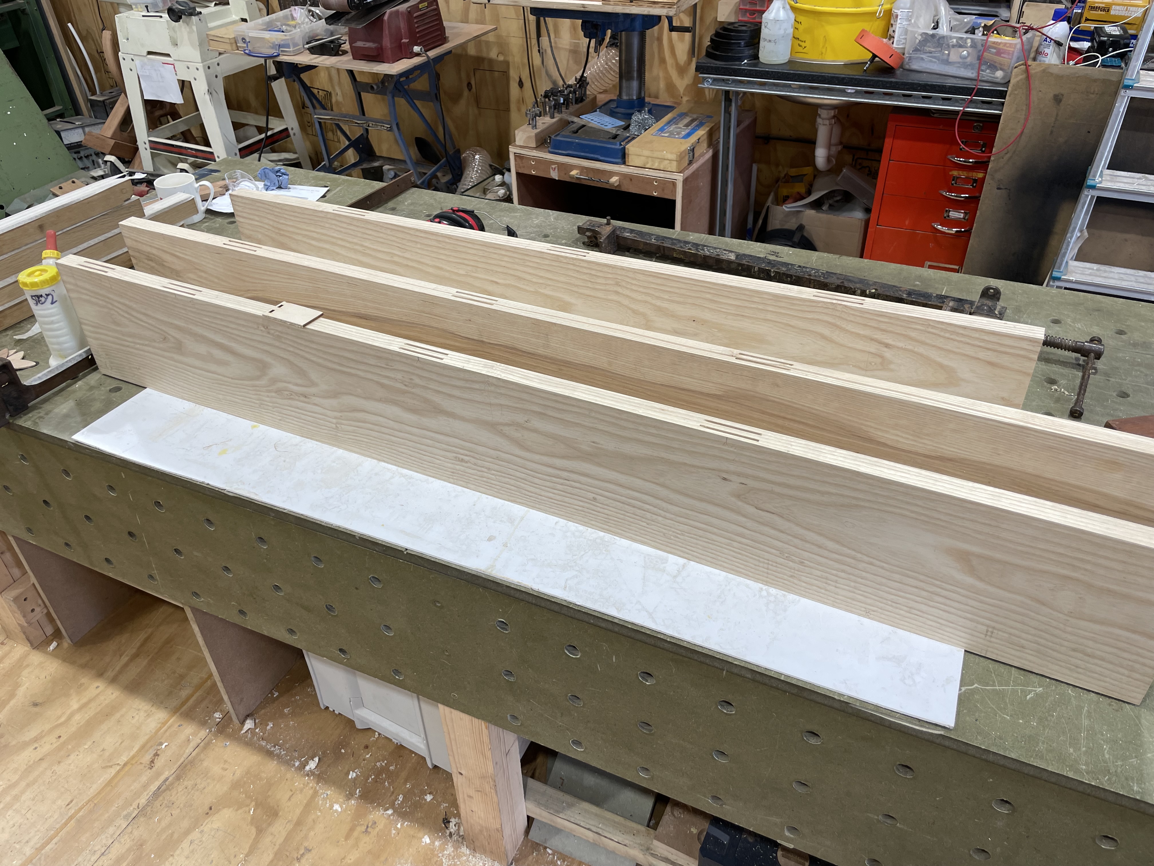 Once that was good, I used a biscuit joiner to help assist with edge alignment for the glue up. The biscuits also help take out the tiny amount of bow in the boards: