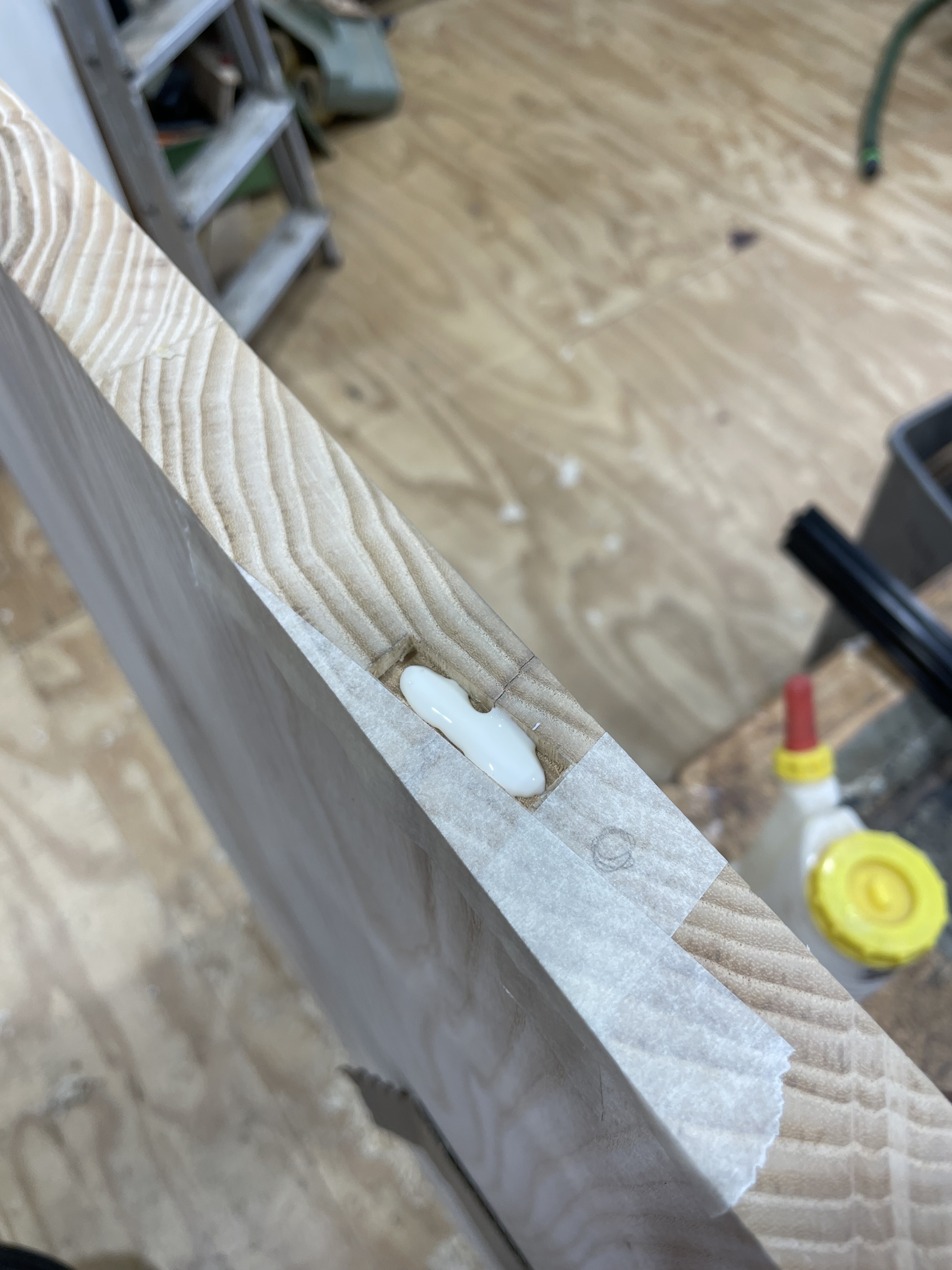 I stabilized a small crack with resin, then did a not-bow tie bow tie. I tried getting creative and placed it into the end grain. While I like it, don’t do this; it’s essentially driving a wedge straight into the crack. The resin should keep it together though. Hole with glue in it: