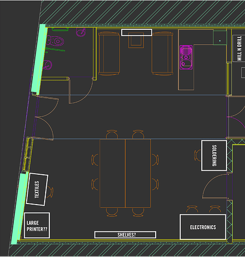 Thought: Vinyl cutter and large format printer could go along the now-clear wall?