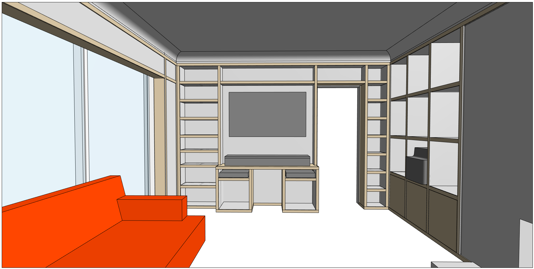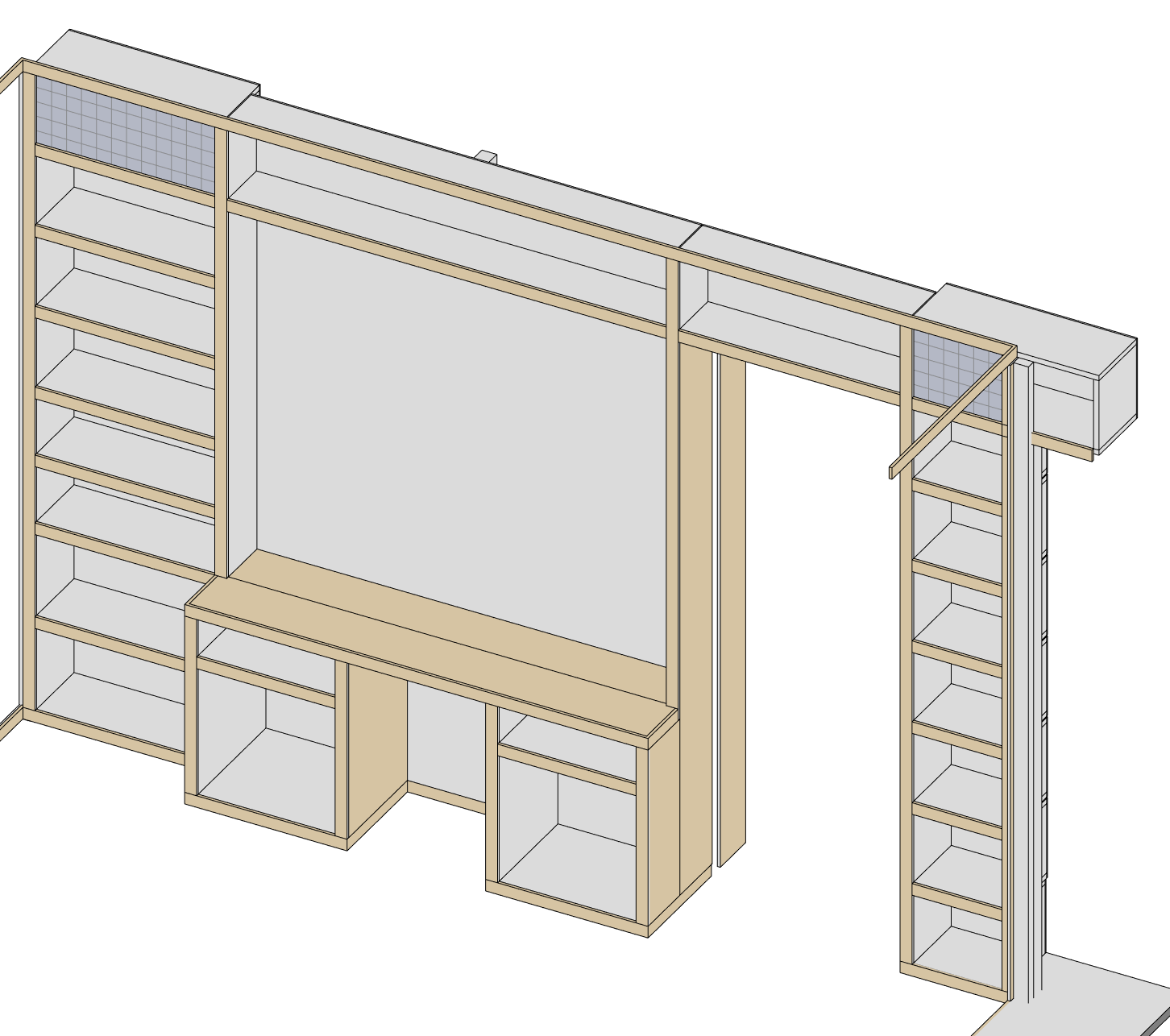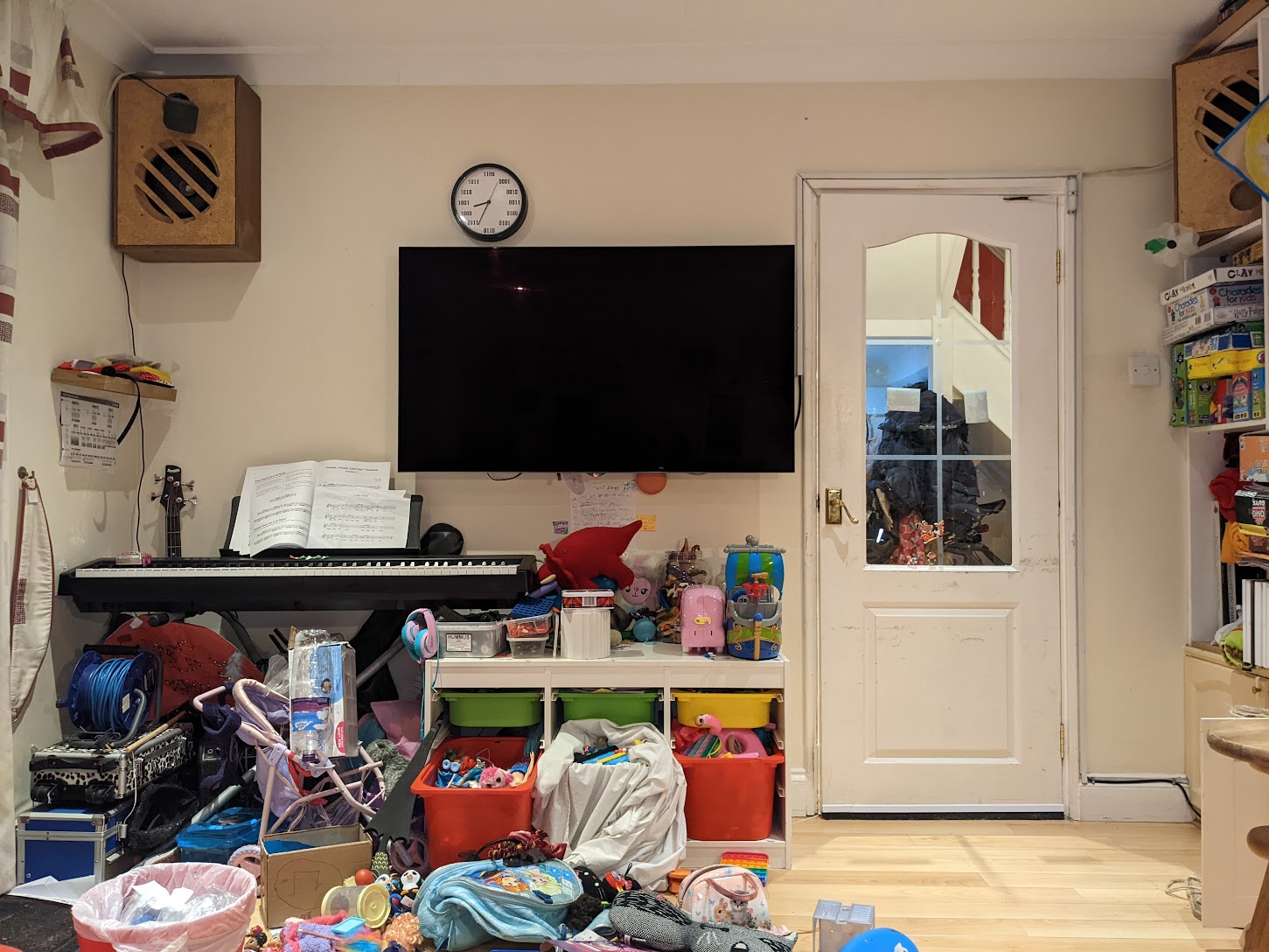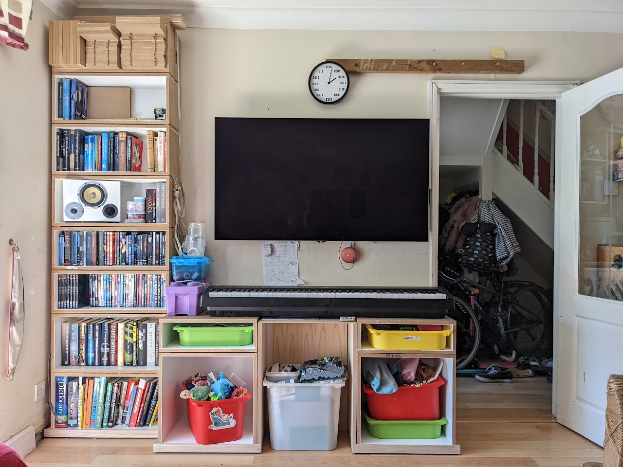 I’ve picked the TV corner to start with, as it gets looked at the most and is the most messy. The door will be replaced with a slider, which will go into a hidden pocket behind the TV.