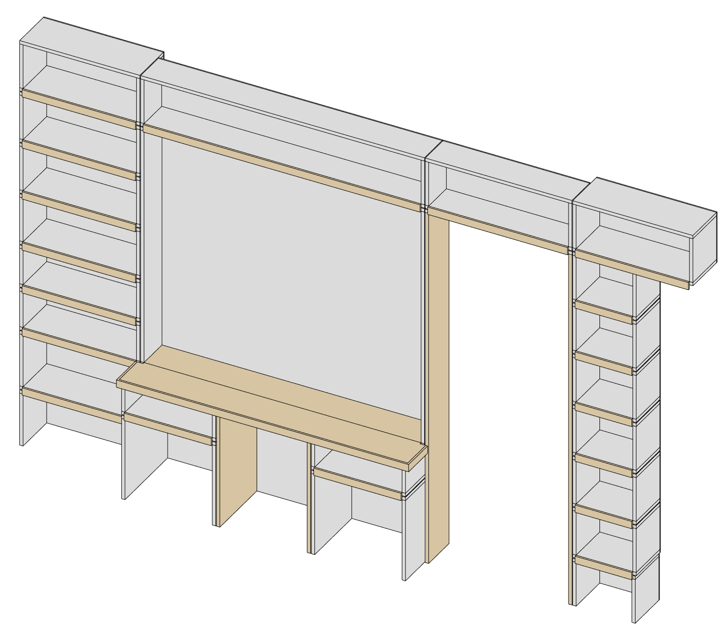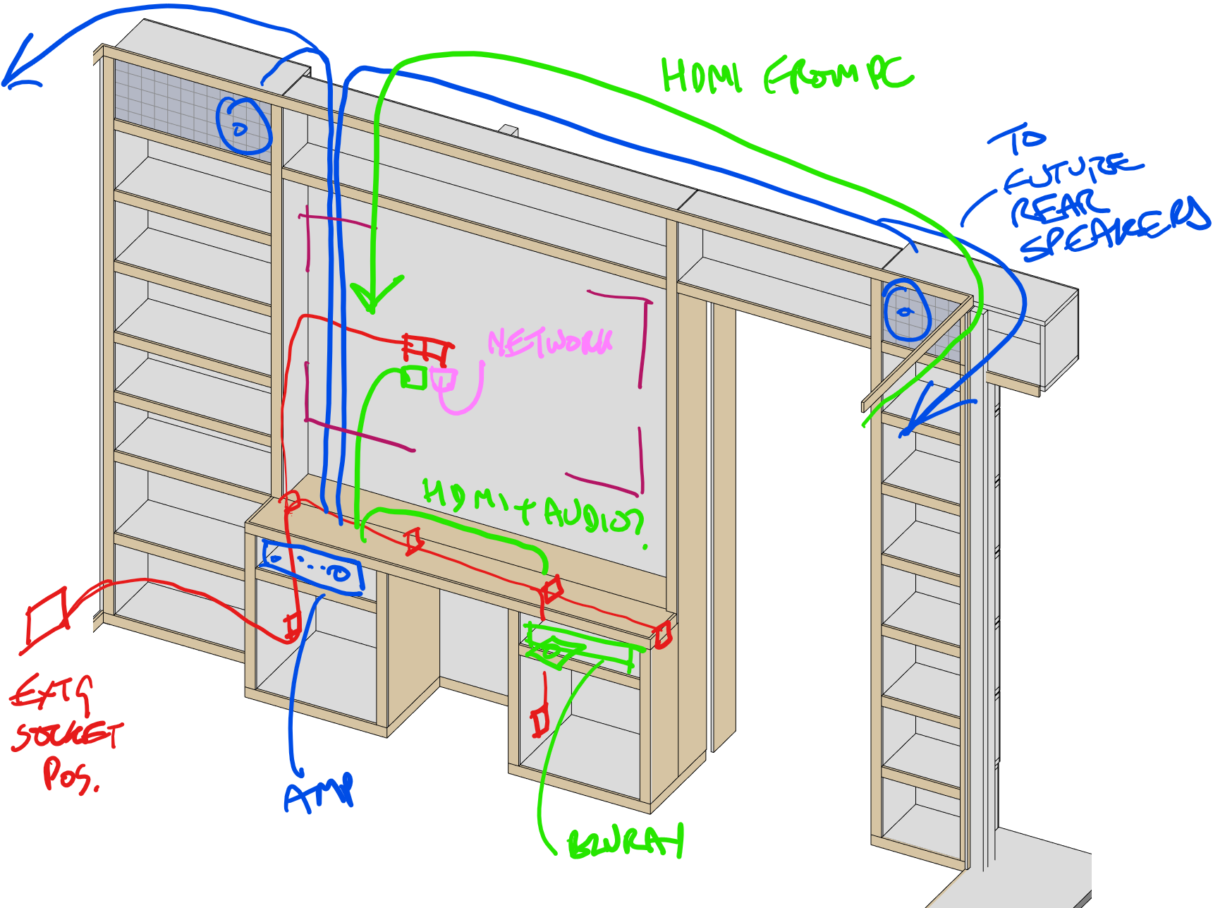 Next: the piano desktop and TV backing/surround. Also need to make sure all the cable guideways are made so AV stuff can be connected up without dangling wires in the void. No ash trim until it’s all assembled and I can make good measurements.