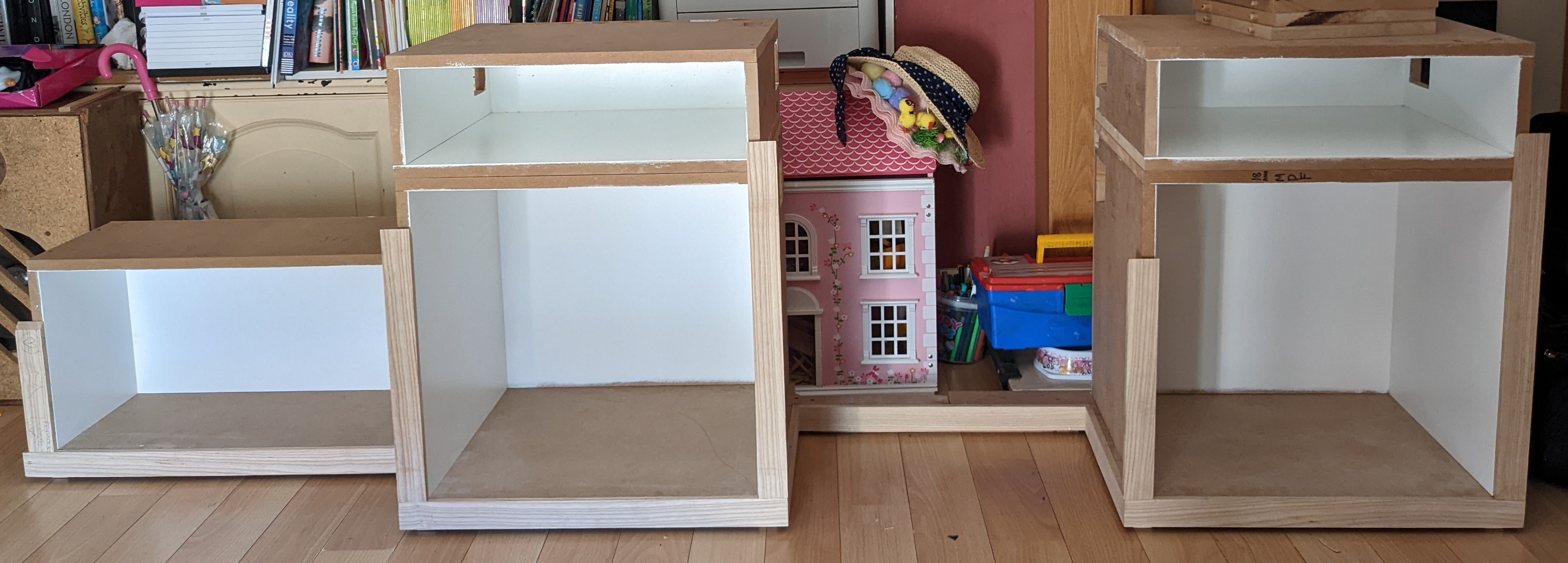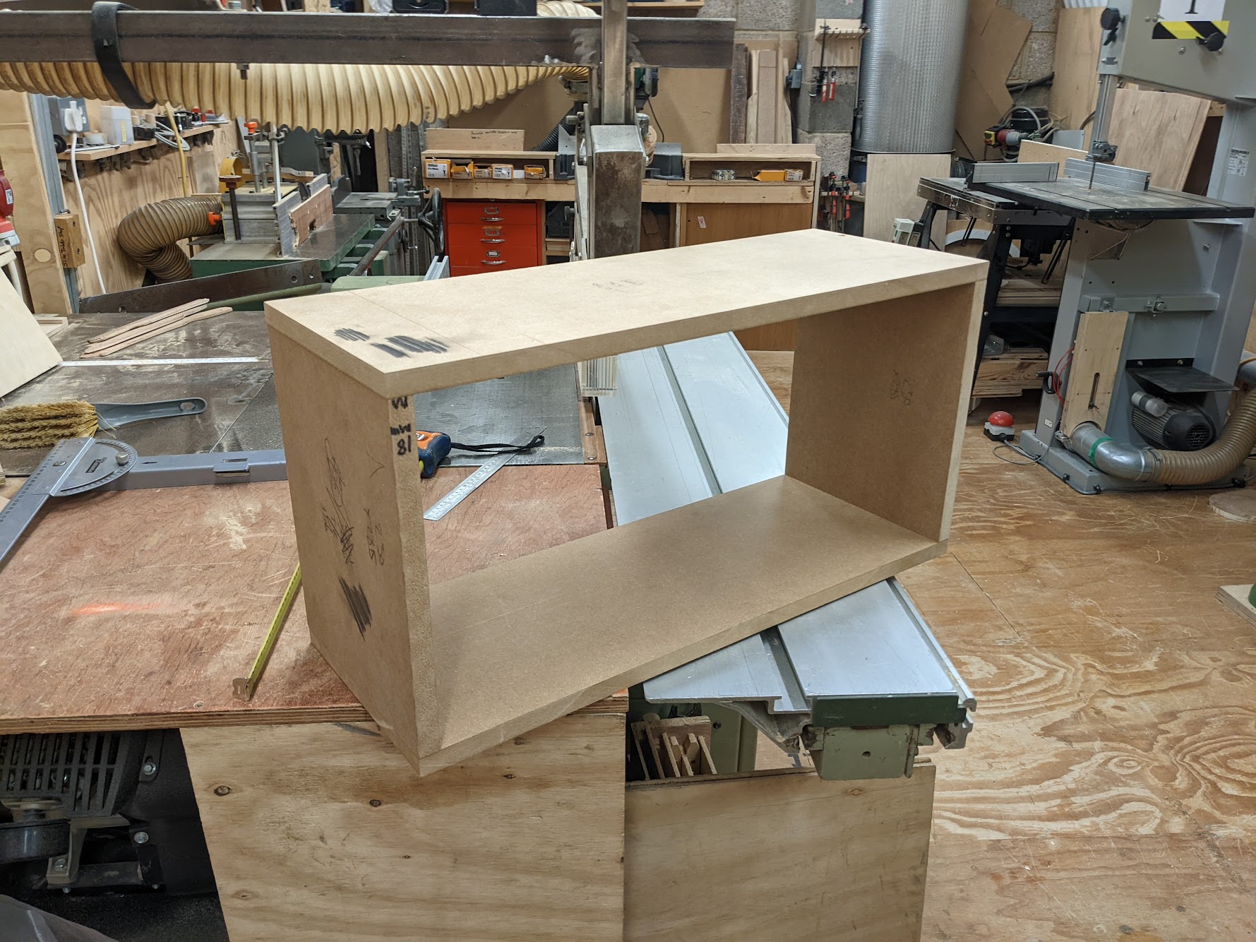 So @joeatkin2 made the very good suggestion that I’m making things far too complicated by effectively “making IKEA furniture” and that I should instead make it all out of simple 4-sided boxes in 18mm MDF, stacked screwed and glued and clad in another layer of MDF. With a little shimming and veneer, the front edges can all present the same thickness:
