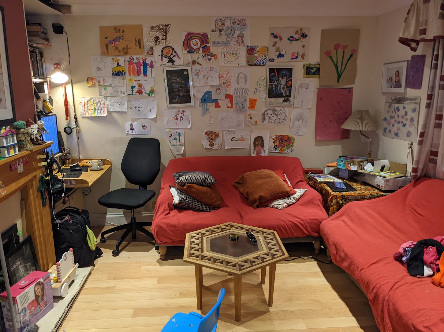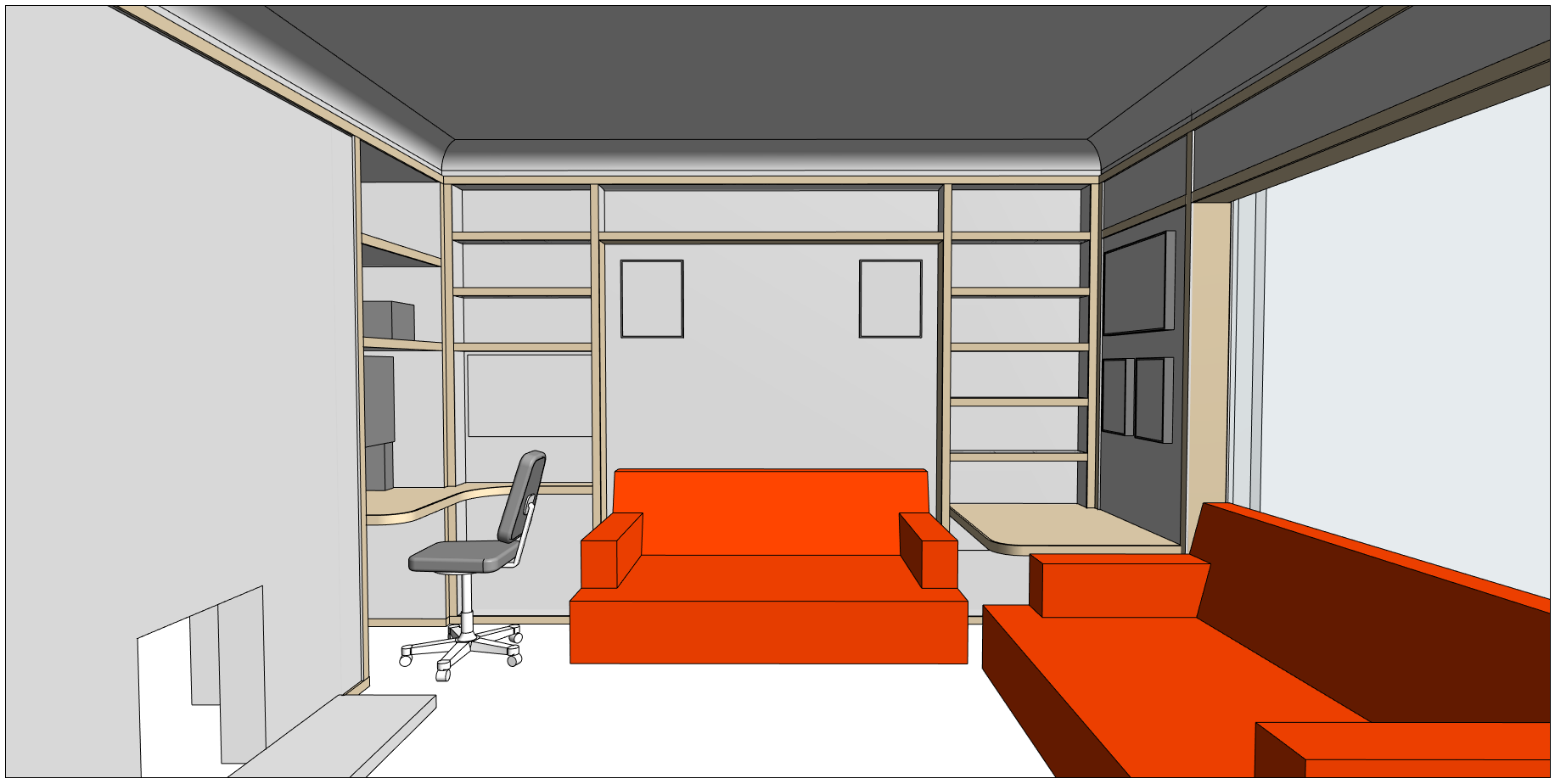 Just over one month of construction time so far, but that will slow down as the weather gets worse (my home workshop is under a tarp stretched out over the patio) and I go back to university. Should have the whole room done by this time next year I reckon.