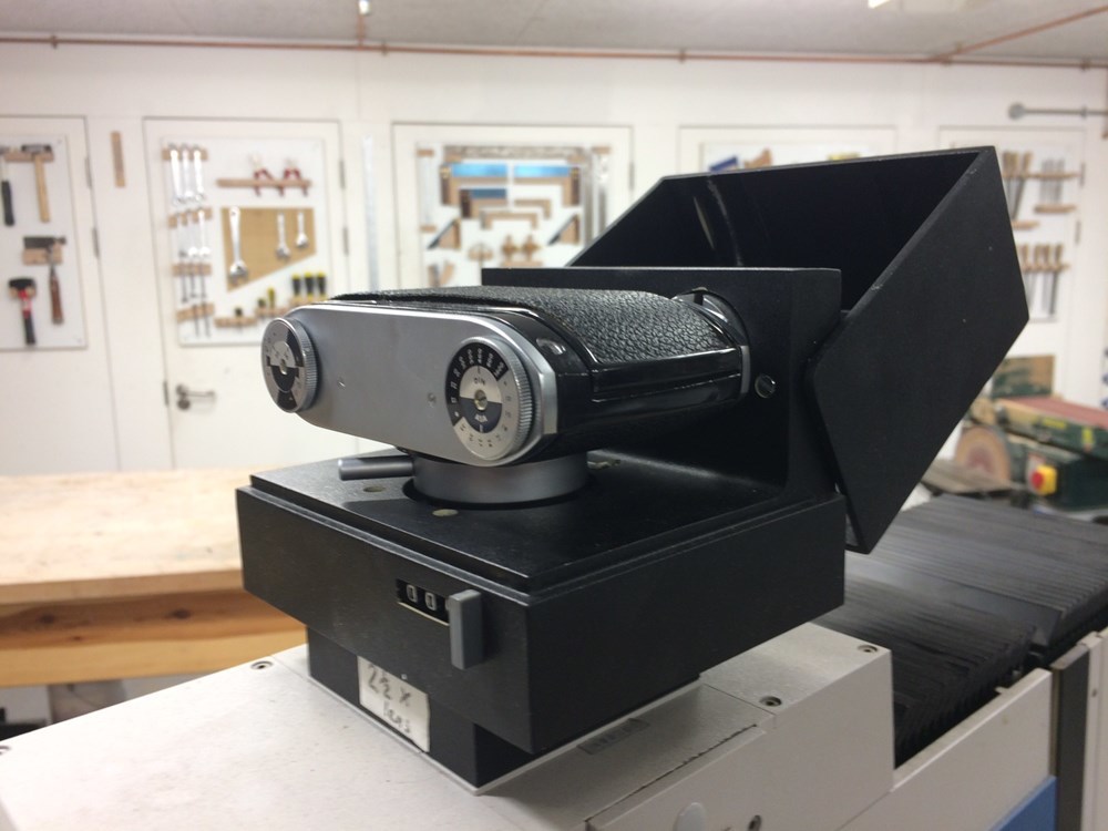 Leica are one of the manufacturers of the microscope, so that is probably why it looks like it has a Leica camera body. However, the manual suggests that part is called a film changing cassette, and comes with the scope, so might not be identical to a consumer film camera of a similar vintage. It would appear to have an arc lamp inside it as well.