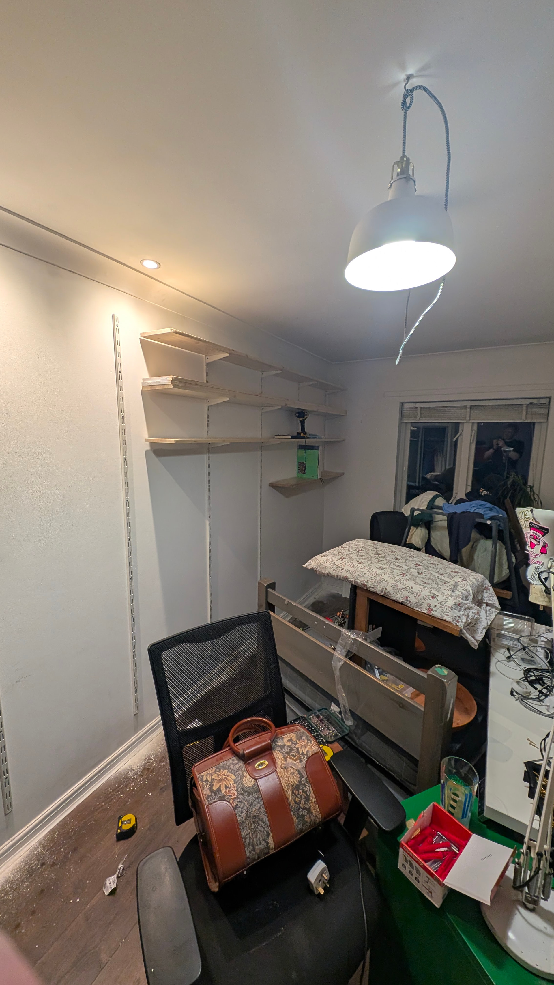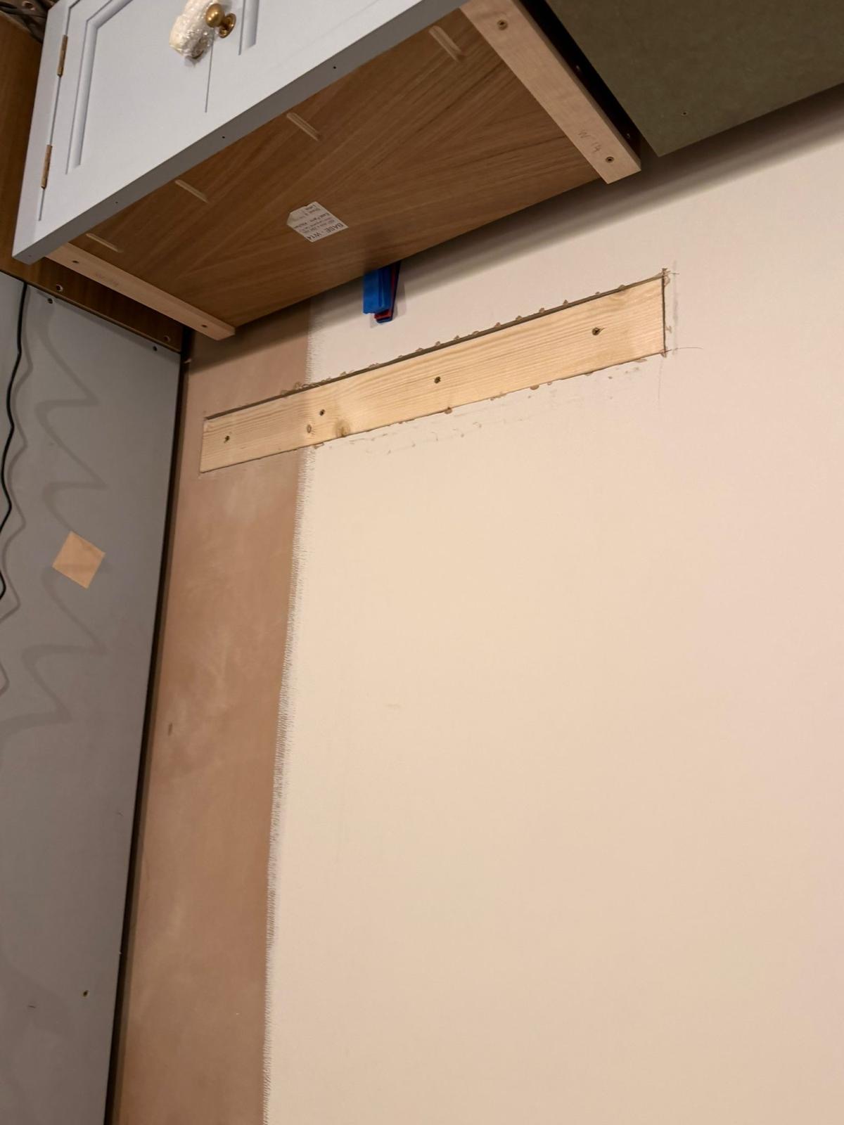 I had assumed (wrongly) that this wall would have wooden battens, and approached it with that mindset. I did purchase a stud detector, which I’ve since learned is more of a density detector. I tried to find the studs, but they seemed inconsistently placed, of varying thicknesses and the detector didn’t find a continous stud vertically… I put lots of holes in the wall anyway though, as I wanted to progress the job.