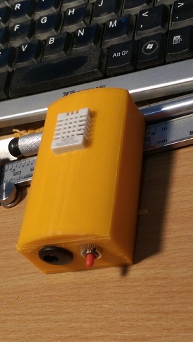 This one hss a mounting for a dht22 sensor on the font and holes for the power plug and a reset switch. I intend to have others for oled displays, batteries or other sensors.