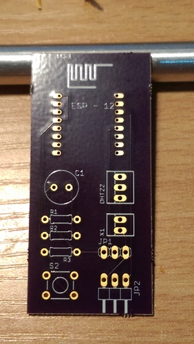 Soldered on the ESP8266-12 to the pads and the rest of the components.