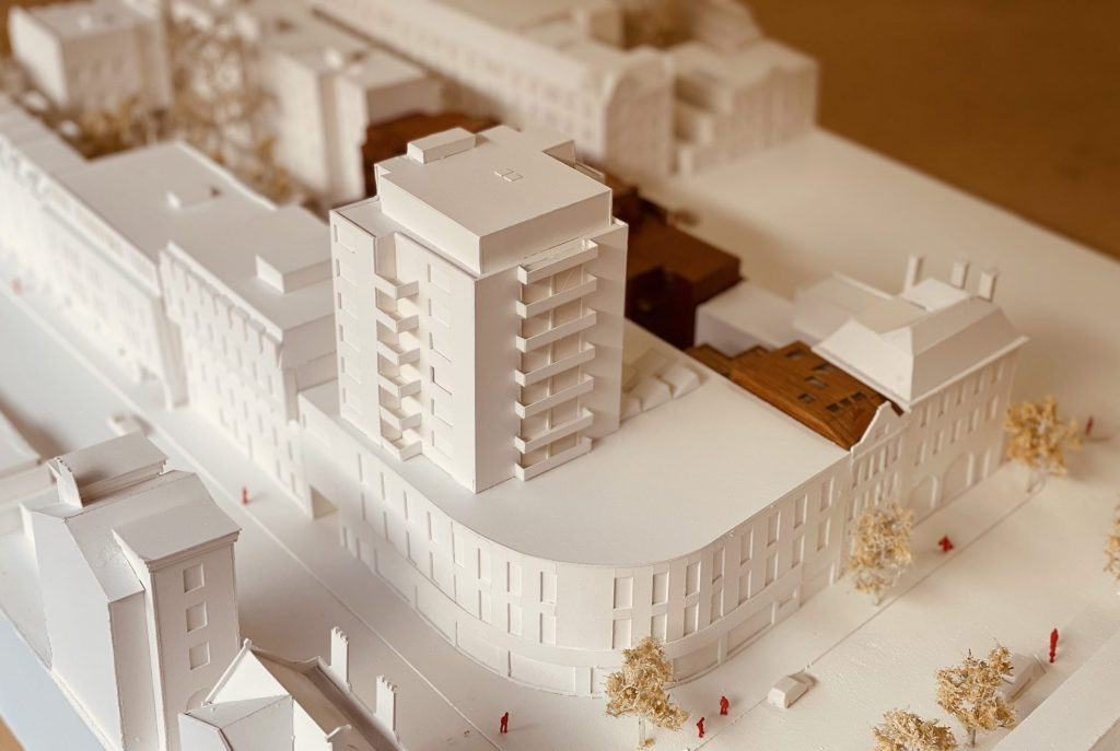 Hey Nick. We built models from balsa wood most of the time. It’s easy to handle, glue and spray if you need to. Foam board also works if you’re looking to do a white model, but the edges are tricky to conceal, but still looks very professional. Sean’s works well with the white card, you’ll just have to be quite accurate with your joints and cuts.