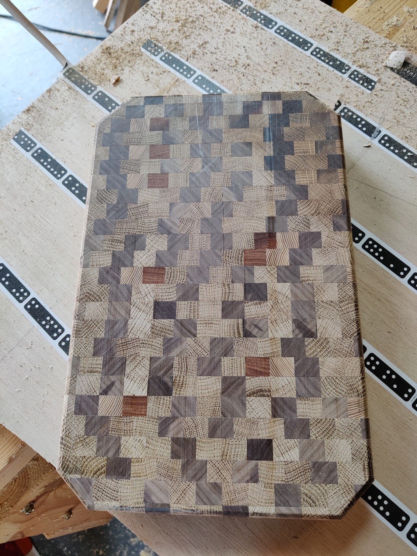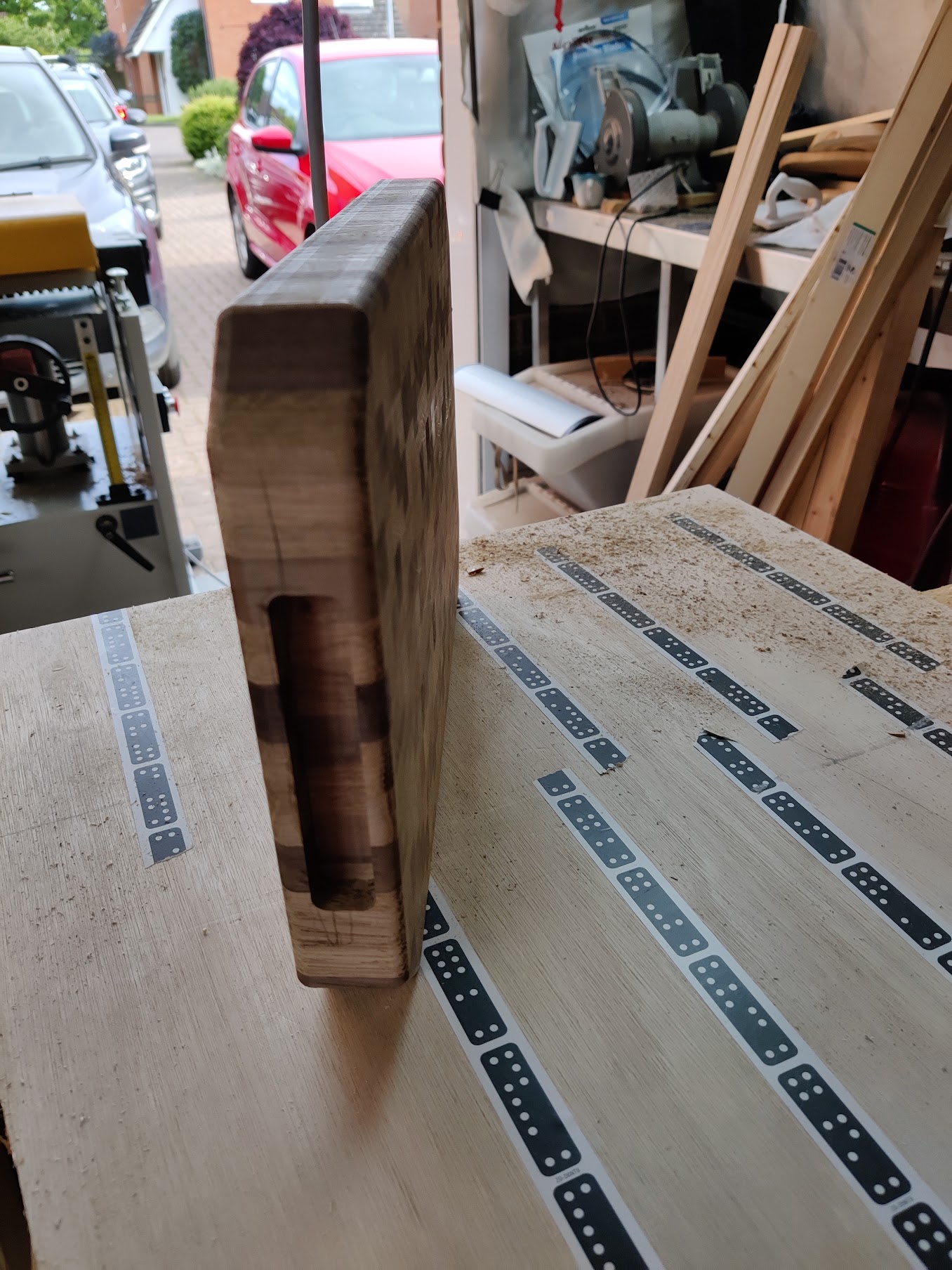 It didn’t deal with the end grain perfectly, but it was pretty good! Just did very small passes of 0.2-0.4mm at a time. It certainly started to catch and tear on the edges, but I got round this by routing round the chopping board with a roundover bit before passing it through the planer thicknesser.