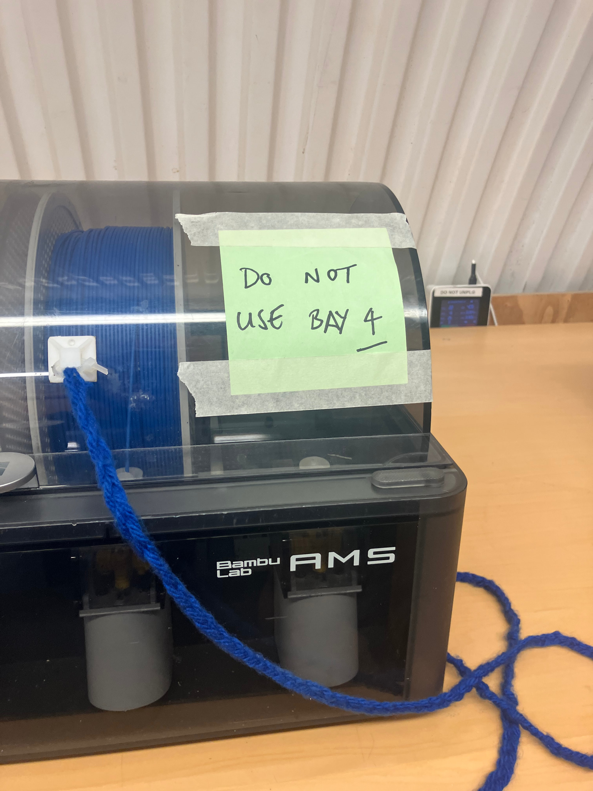 @3dtechs tried loading a spool in bay 4 of the AMS and it wasn’t feeding through properly - have put a label on it until a tech can take a look, the other bays seem to be working ok