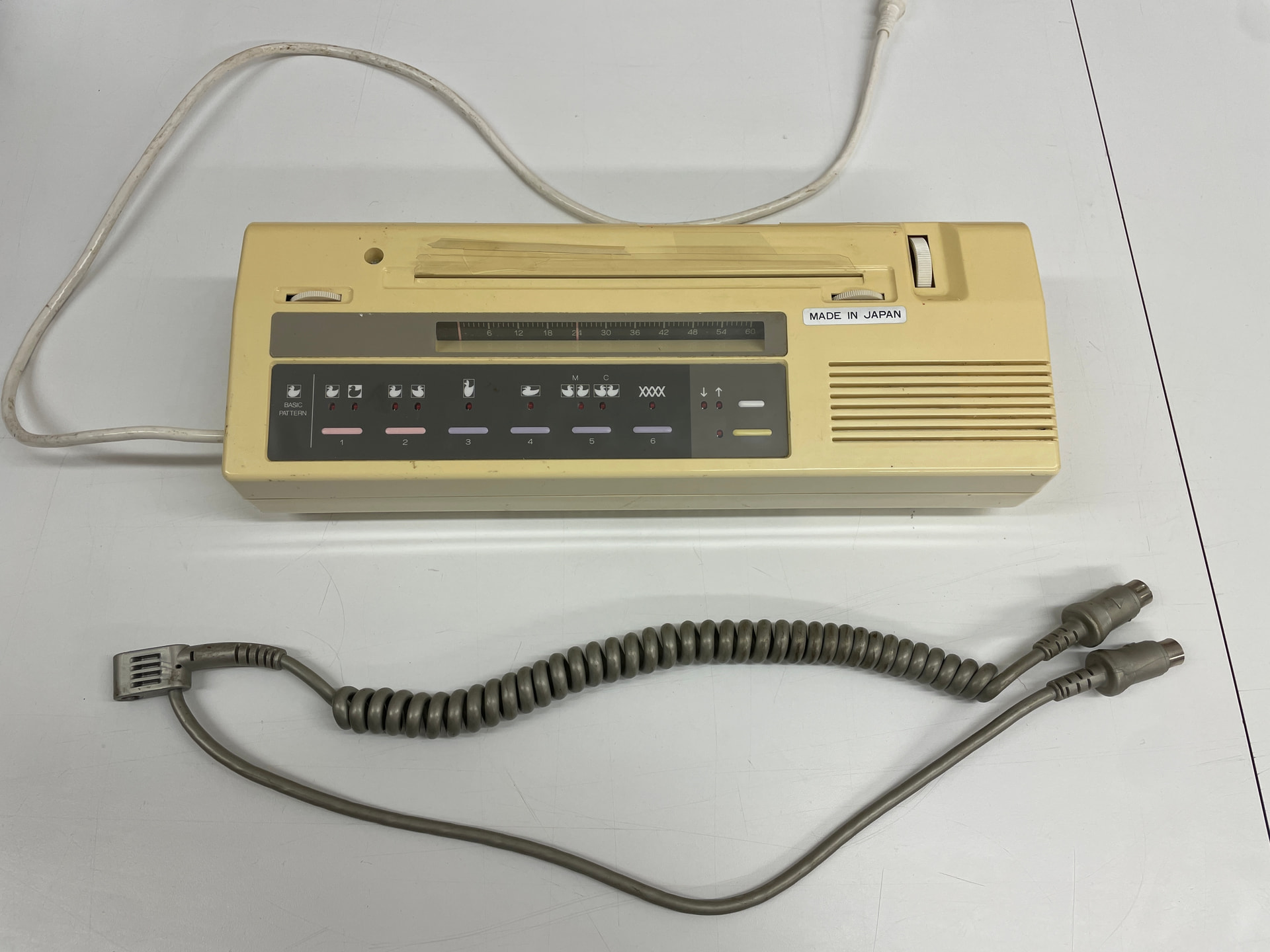 Patterns can be found in the black folder labelled ‘Machine Knitting Patterns’ (on top of the chest of drawers):