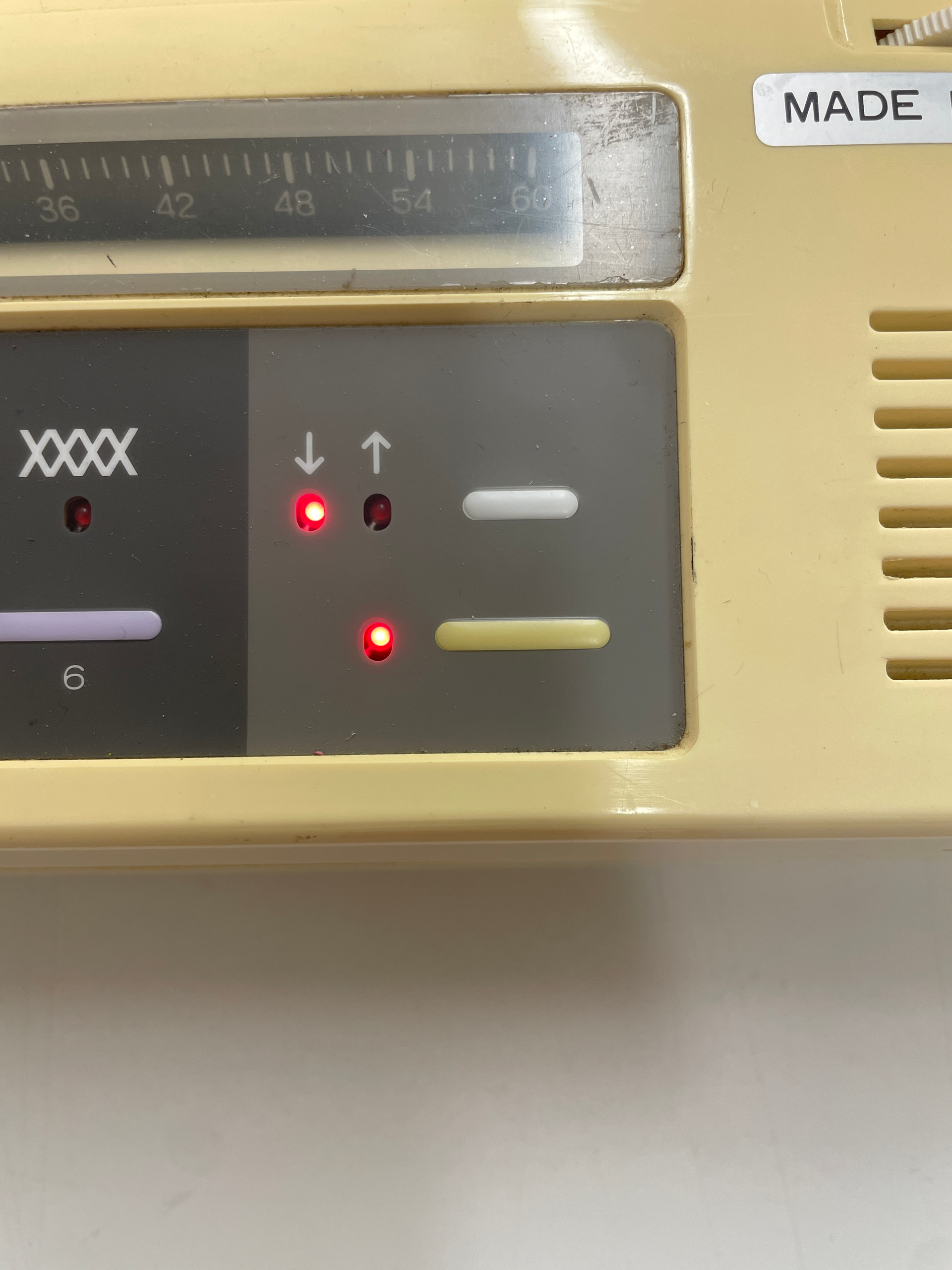 While setting the pattern, the inspection light (lower yellow button) should be on. If this light is off, passing the carriage across the needle bed will cause the pattern to advance one row. While this light is on, the pattern will not advance.