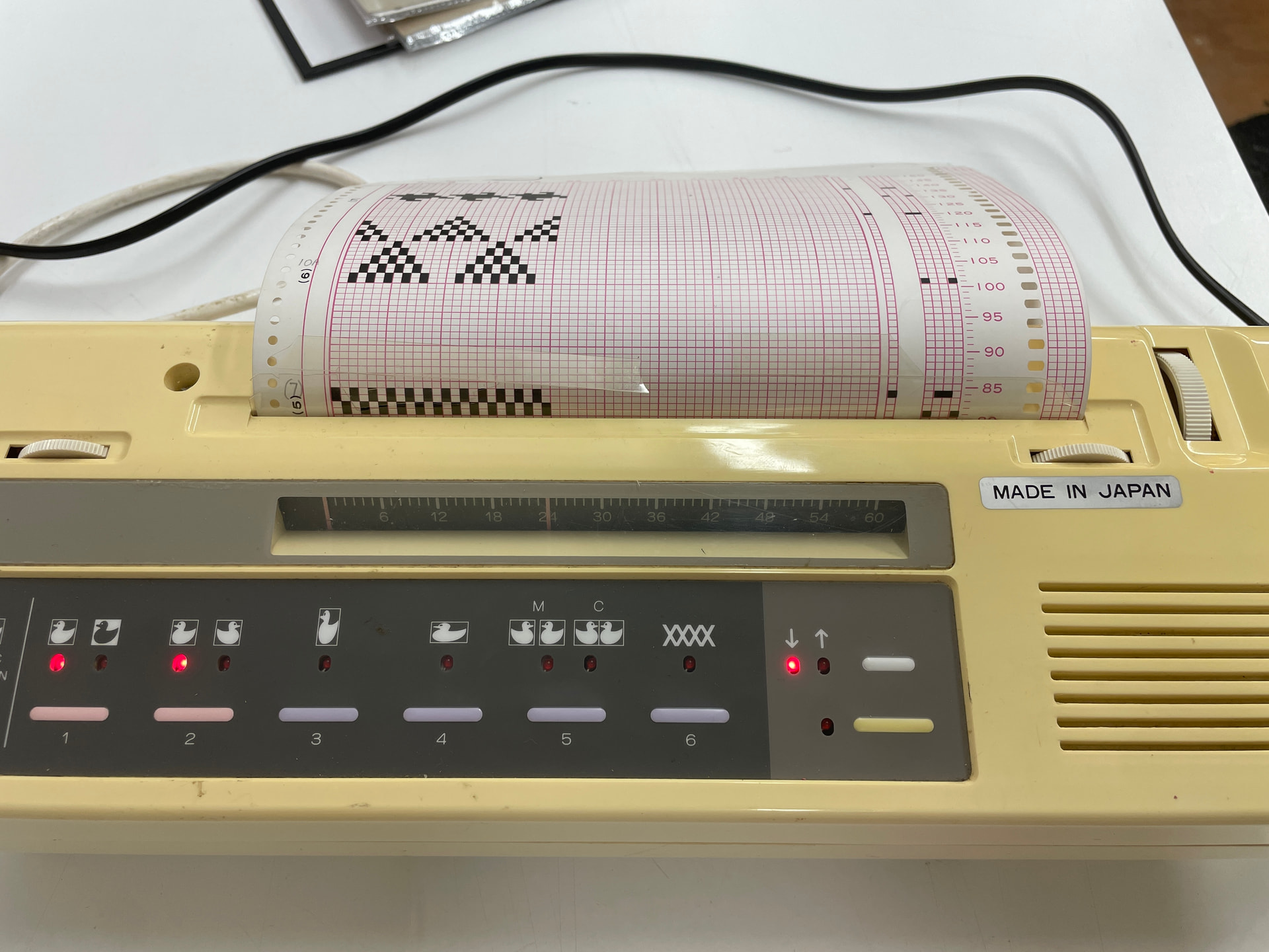 Once you’re ready to begin knitting the pattern, switch the inspection light off. At this point, the first few rows of the pattern will feed into the EC1 automatically.