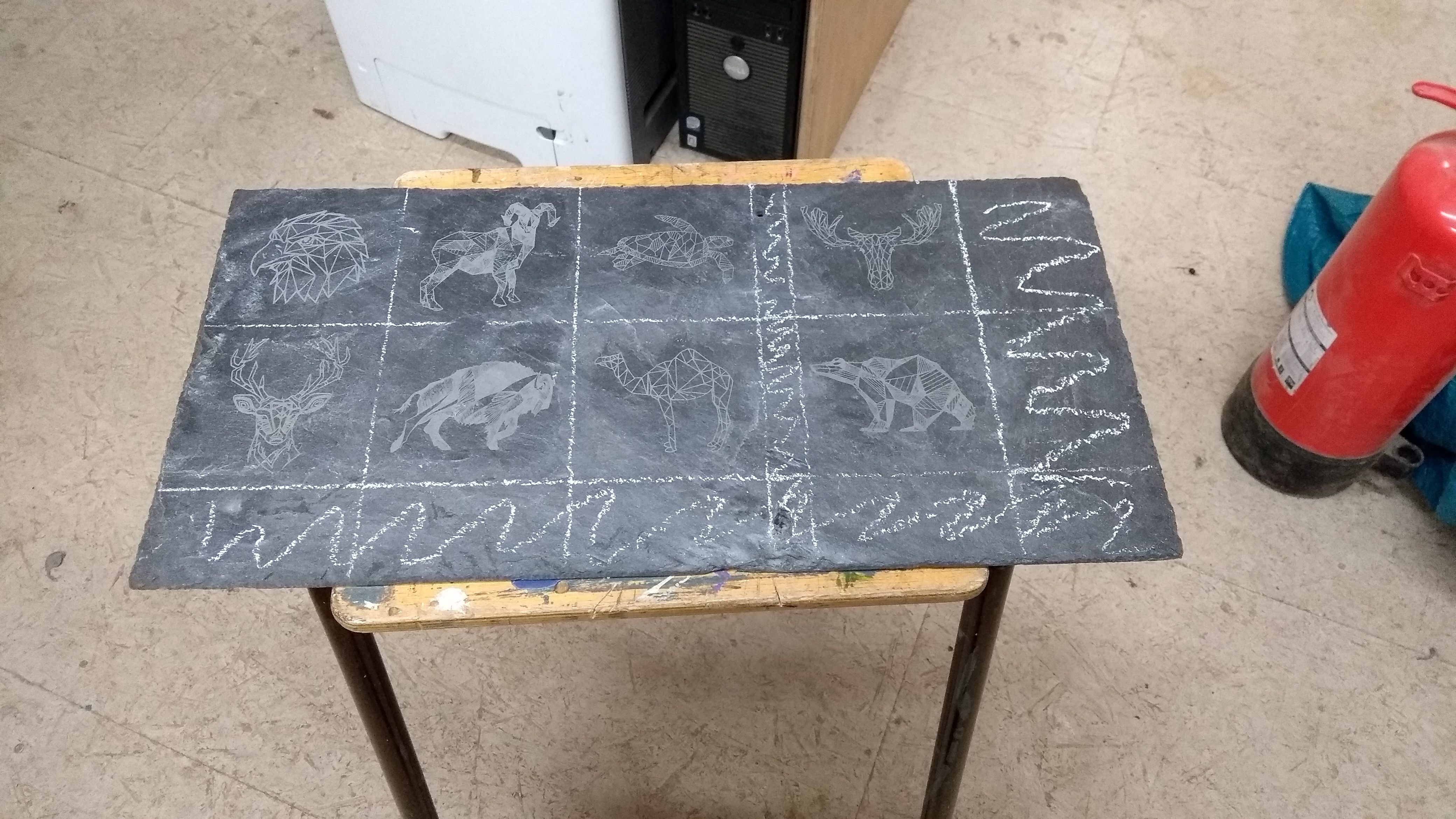 First session of lasering slate… Thanks @DAC17 for the slate and @peter_hellyer for helping find inspiration.