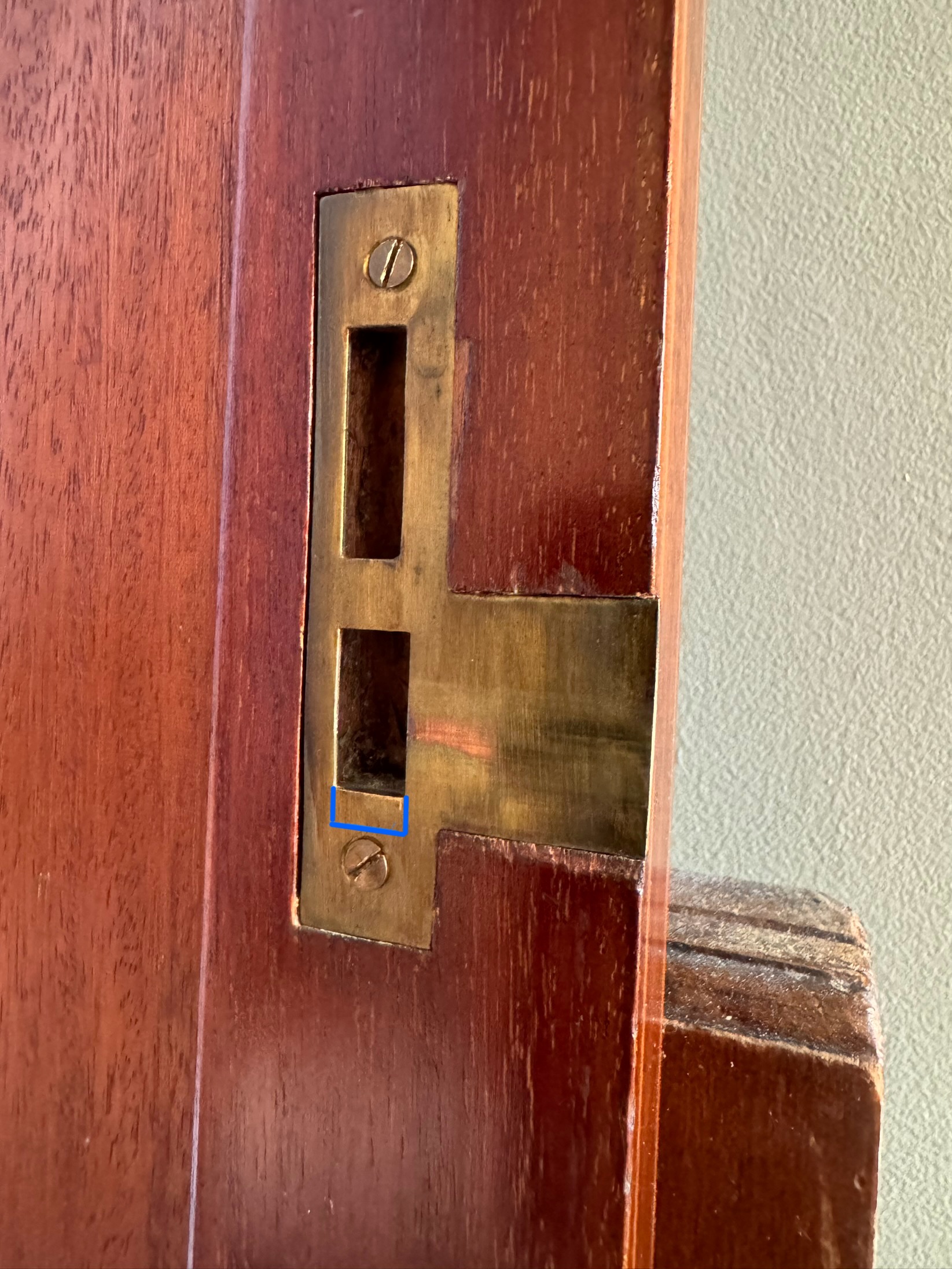 I was planning to come down to the space this afternoon with this wardrobe latch which I need to file down to the blue line as it’s currently too high, I suspect the corresponding door latch has probably been replaced by someone at some point.