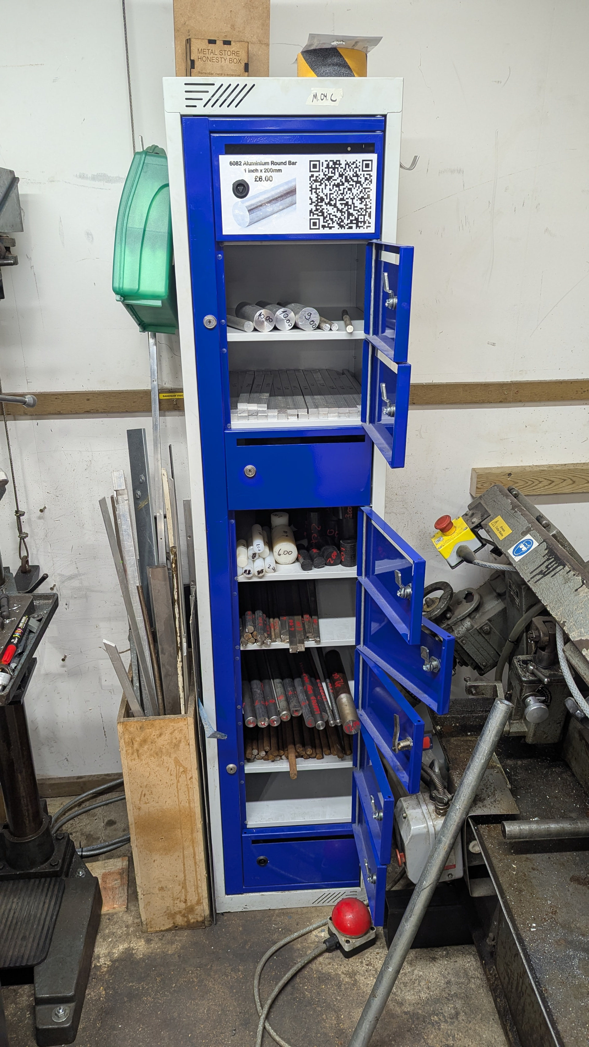 • The 1" aluminium round can be paid for online using the QR code on the cabinet.