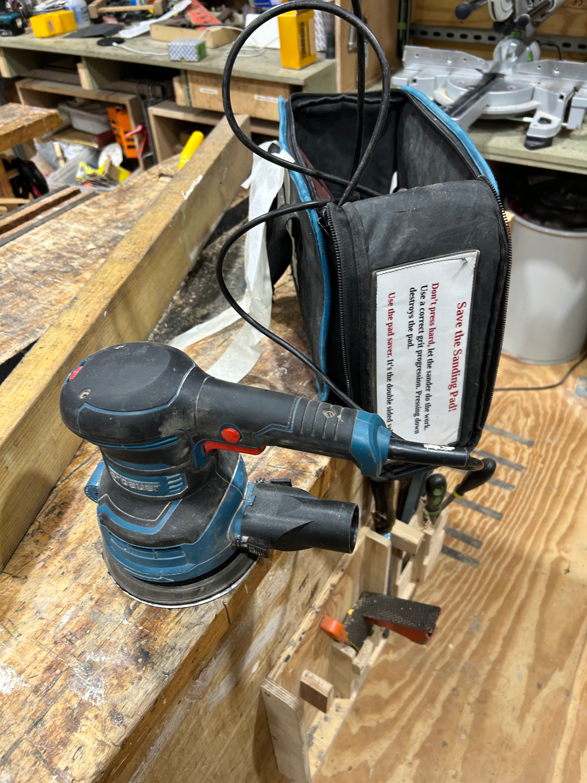 Side note for anyone else looking to use the orbital sander: the compressed air powered one works fine and is actually fantastic, way better than the out of action electric one