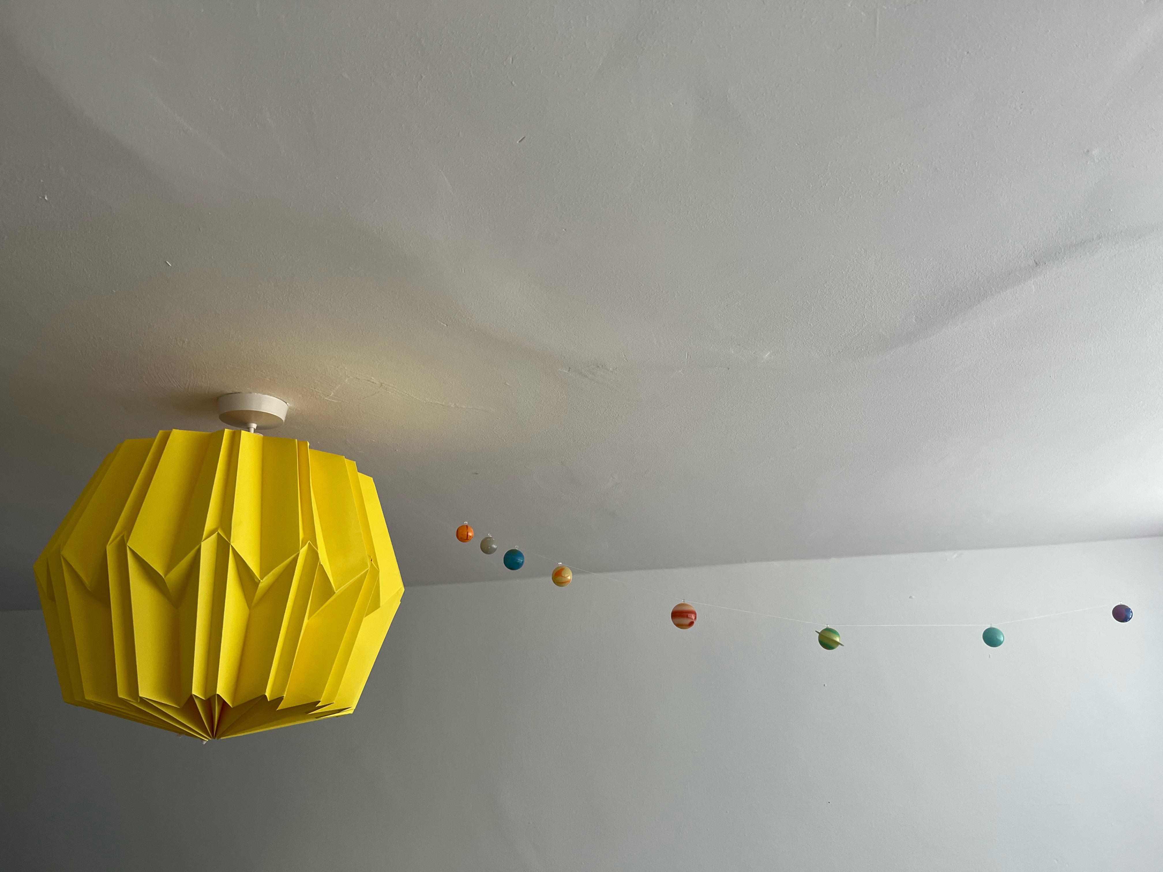 The big yellow one is a sun (obvs!) with the planets stretching away from it (which I didn’t make). This is part of my mildly obsessive solar system theming for the kids’ bedroom.
