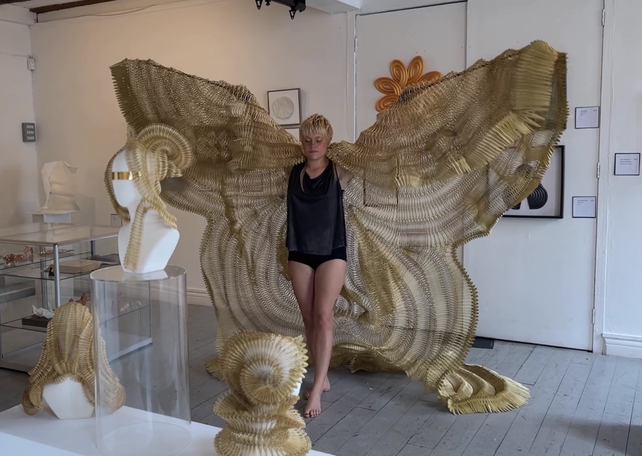 A chance meeting at Maker Space in July has resulted in a collaboration between @izsaunders @darrylbedford. The artwork titled Hagoromo’s Robe transforms from a sculpture into a feathered celestial robe.