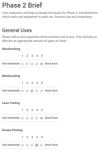 That looks good, I think indeed what needs voted on is the primary use of the spaces, doubt theres not enough space for eveything. All the general aims etc are all fairly cohesive which is good.