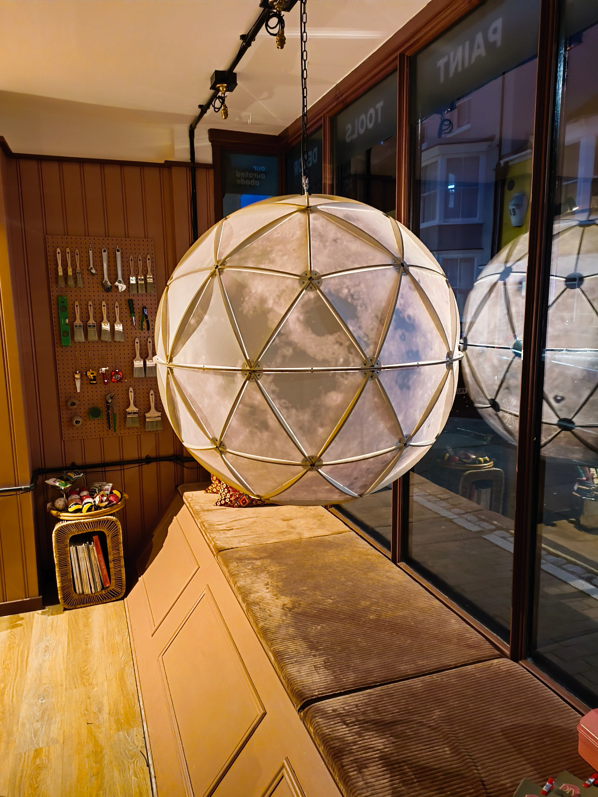 I’ve just finished installing a moon as part of the Light Up Ramsgate festival. I thought e might like to see some pictures! Laser cut poplar ply and 0.5mm polypropylene backed with laser printed tracing paper, all modelled with Fusion.