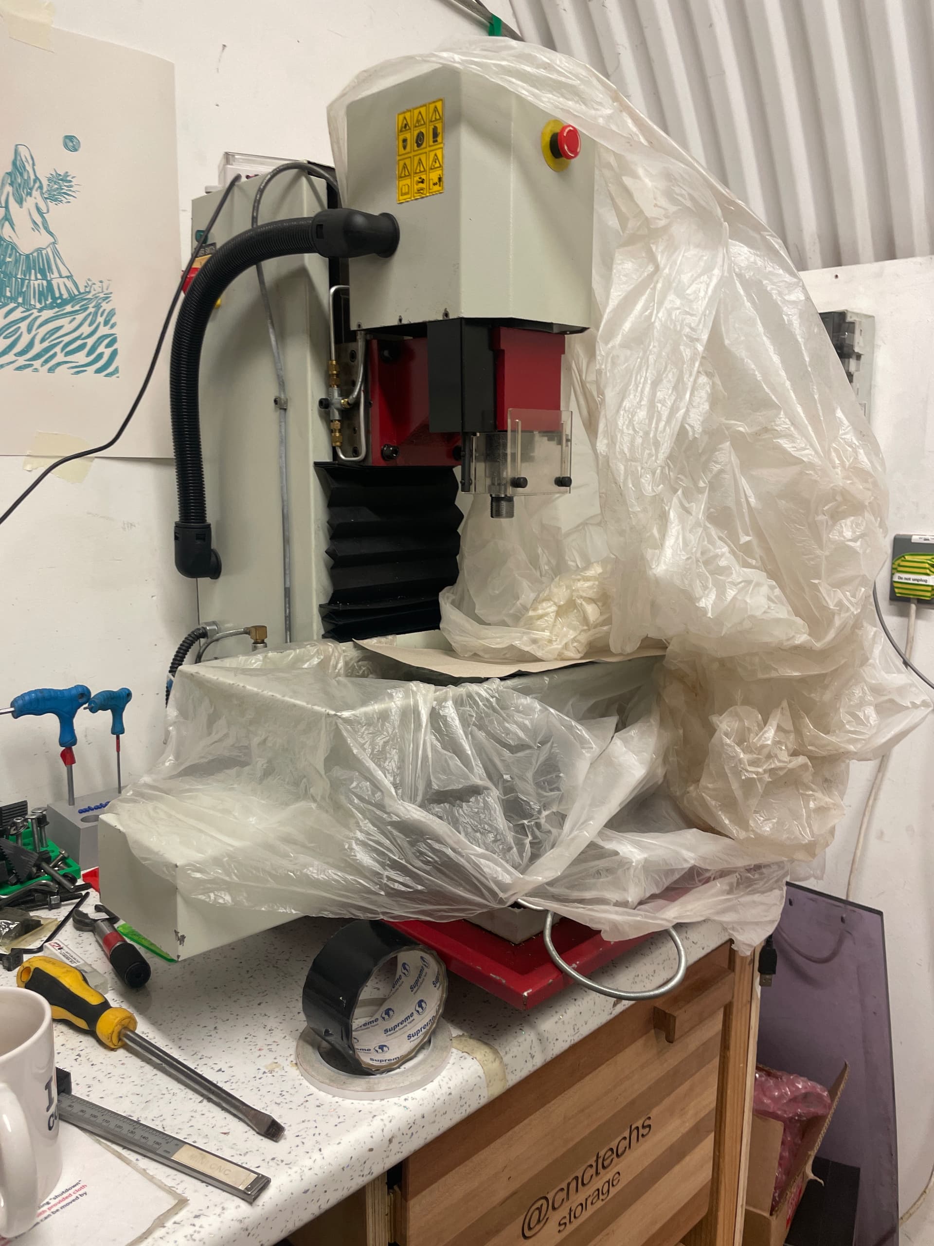 It gets dirty with coolant, which isn’t great for the messy room (which doesn’t like anything oliy for the lasers, screen printing and other CnC. So it needs and enclosure or we need to move it to Metal Shop @metaltechs. We’ve been talking about an enclosure, but atm priority is on inductions all over the space as we’re SO behind on CnC, Screen printing, etc waiting lists.