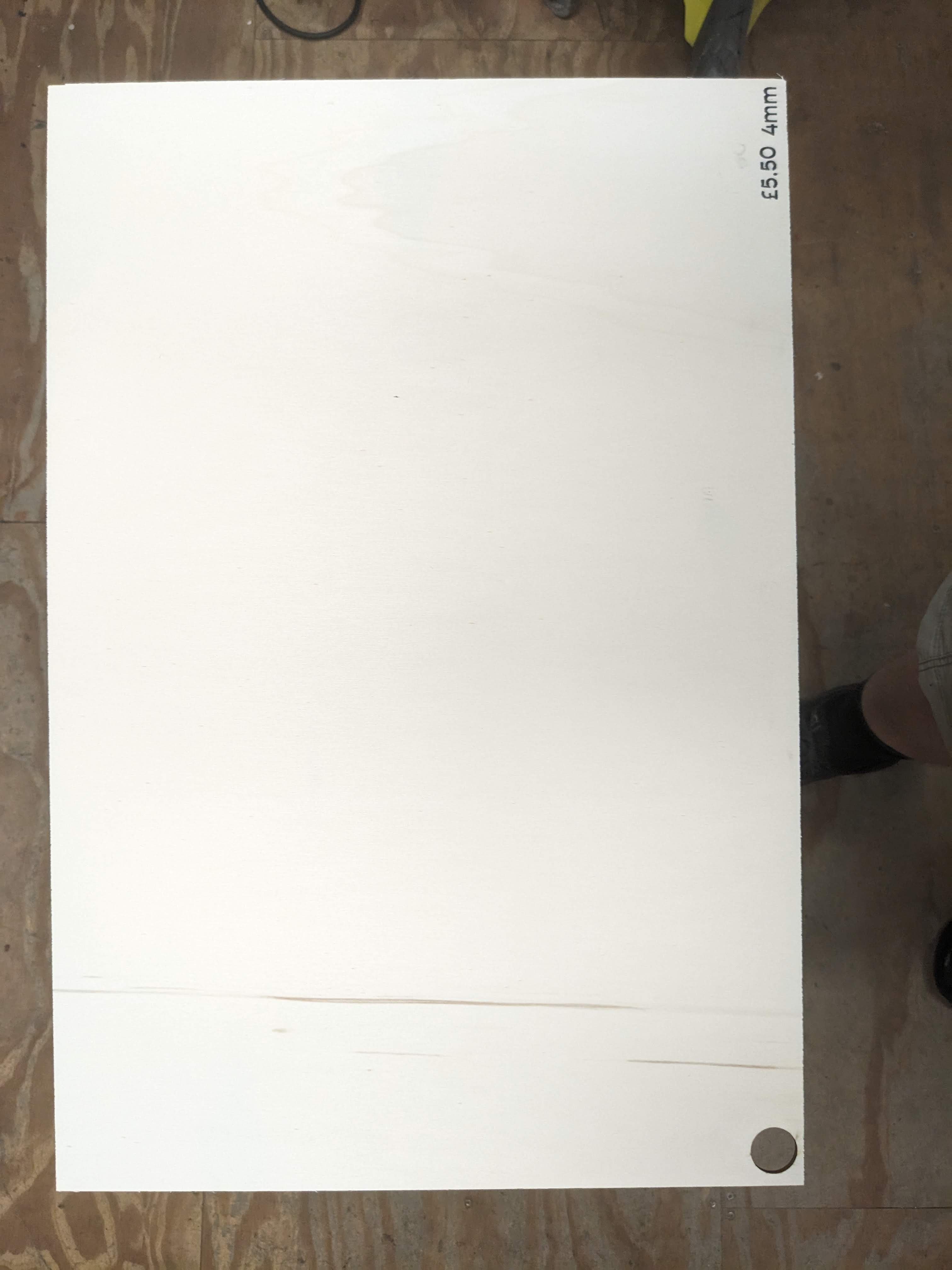 I found it hard to be sure whether the plywood offcuts were 3 or 4mm. The thickness seemed to vary between 3.3 and 3.7mm, so I decided using the marked sheets was more reliable.