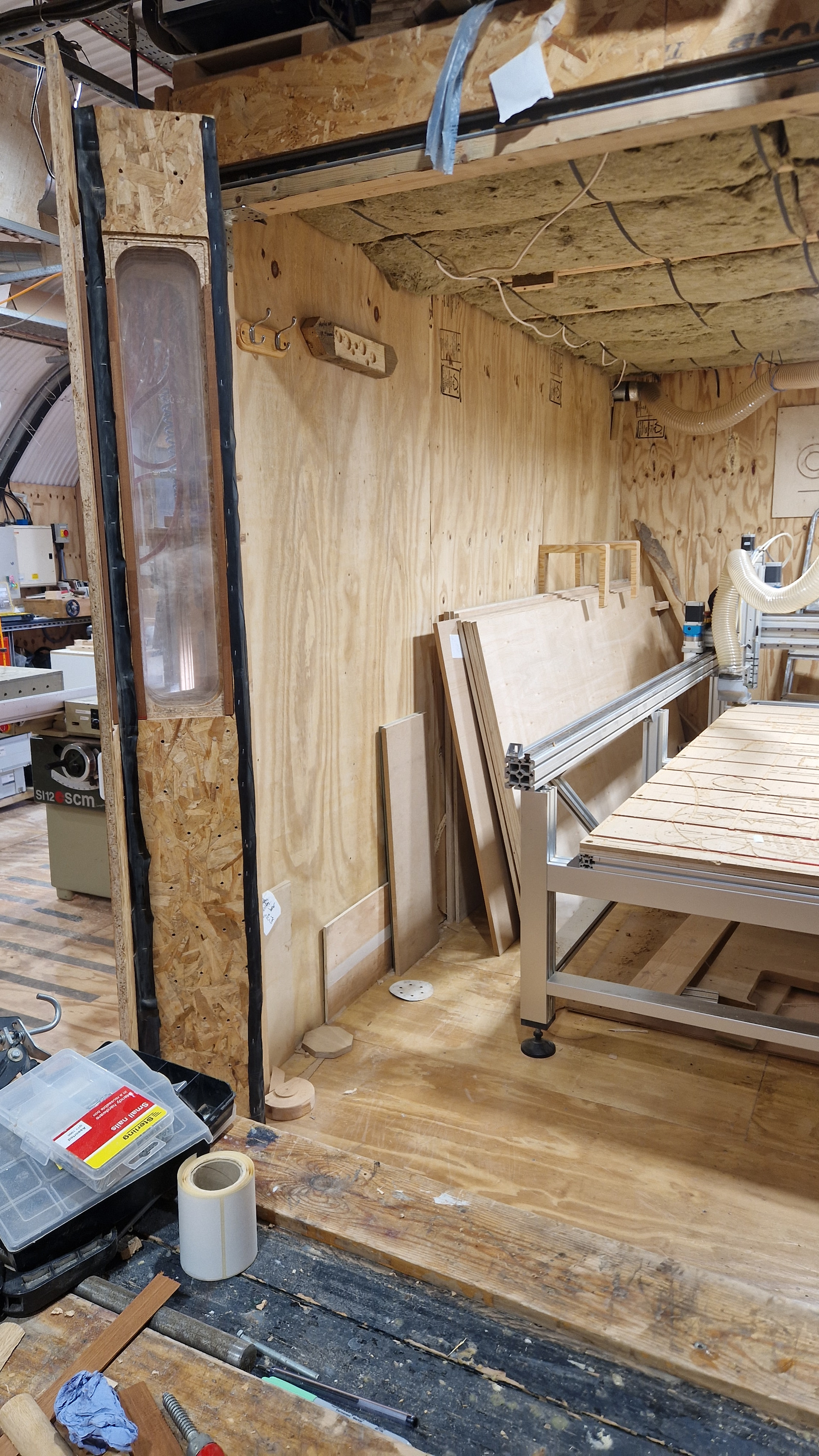 I’ve got some ply sheets in the woodshop which i intend on moving to the cnc area but wont be able to do this until saturday morning. If they are in the way (which it looks as though they are) please move into the cnc enclosure to the left of the cnc. Sorry for the inconvenience!